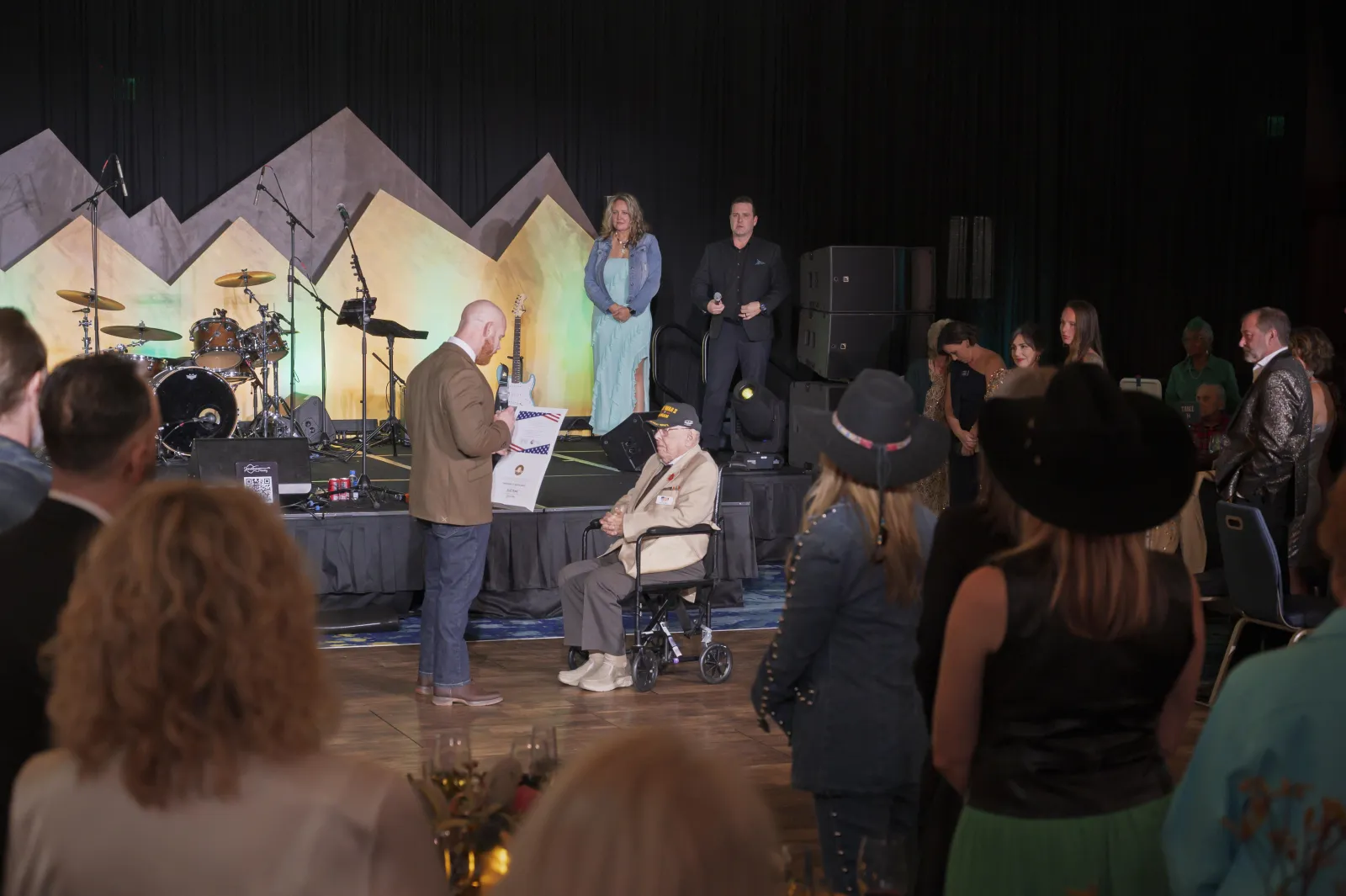 Later in the evening, one of our hospice nurses, Paul, a wounded veteran, stood in front of the crowd and honored Bill with a pinning ceremony. The entire room rose to their feet. The standing ovation was loud and long. That moment was made possible because Bill was surrounded by care, and because everyone in the room understood how much his service and his story mattered.